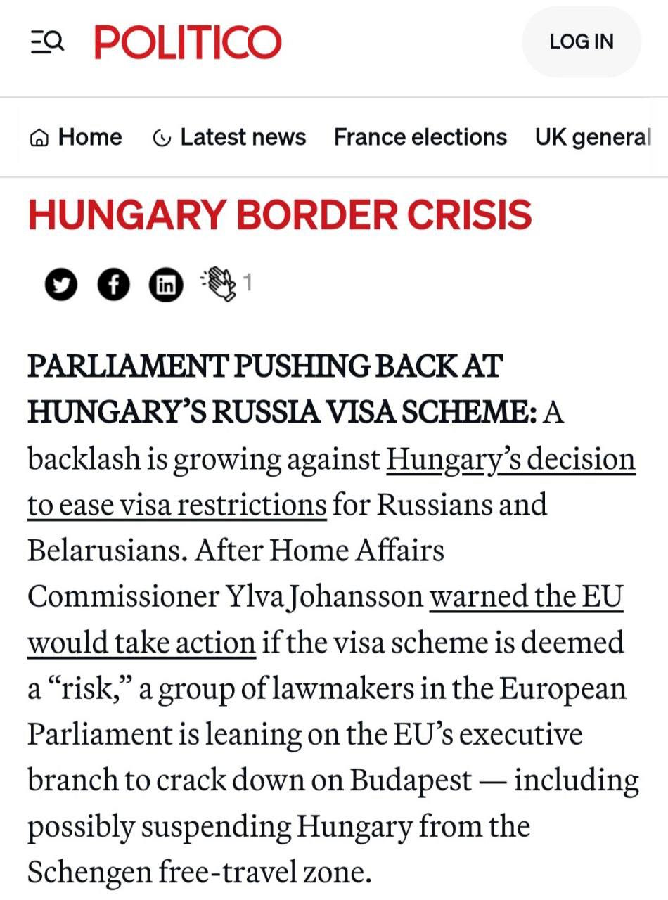 В послании также упоминается о возможности непризнания выданных Венгрией шенгенских виз и контроля на границе со стороны других стран ЕС.