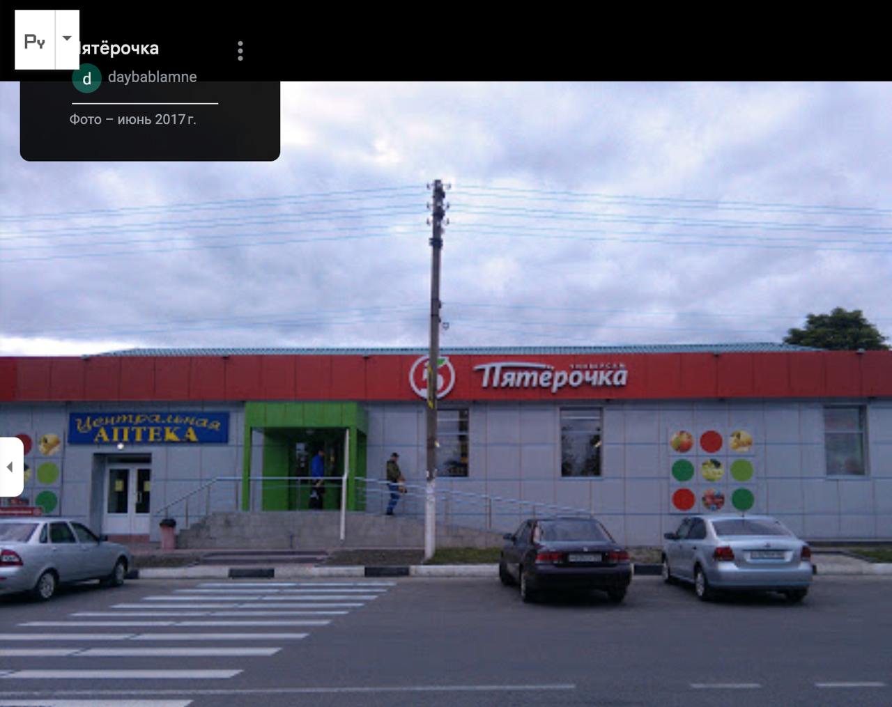 Человек в форме ВСУ стоит у магазина известной в России сети "Пятёрочка". Судя по карте, этот небольшой универмаг расположен на западной окраине города, где Минобороны РФ подтверждало наличие украинских войск.