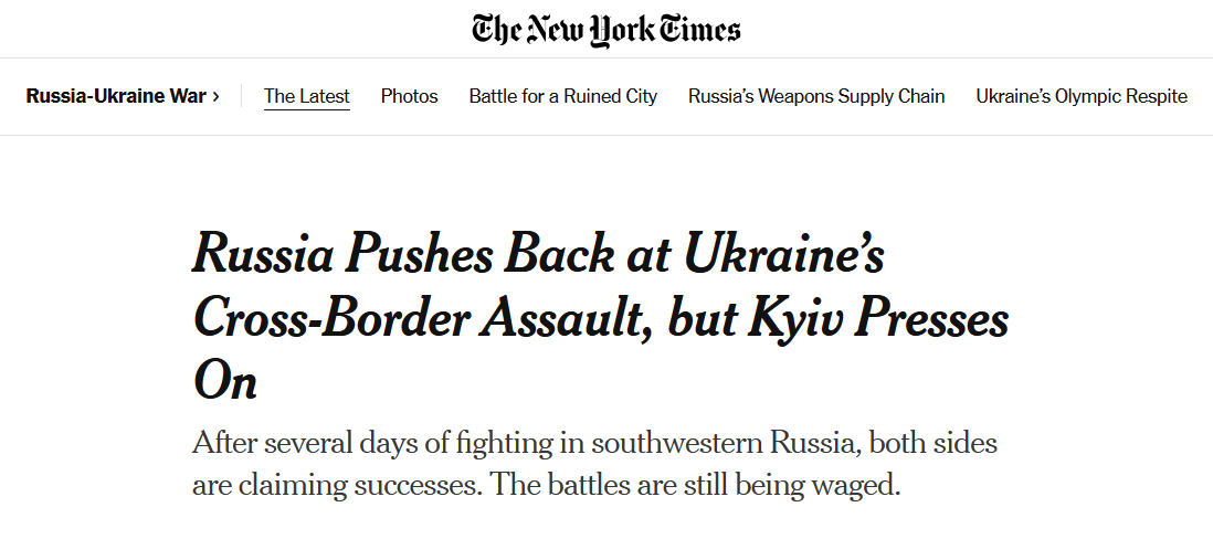 Россиянам удалось остановить продвижение ВСУ на север Курской области - The New York Times