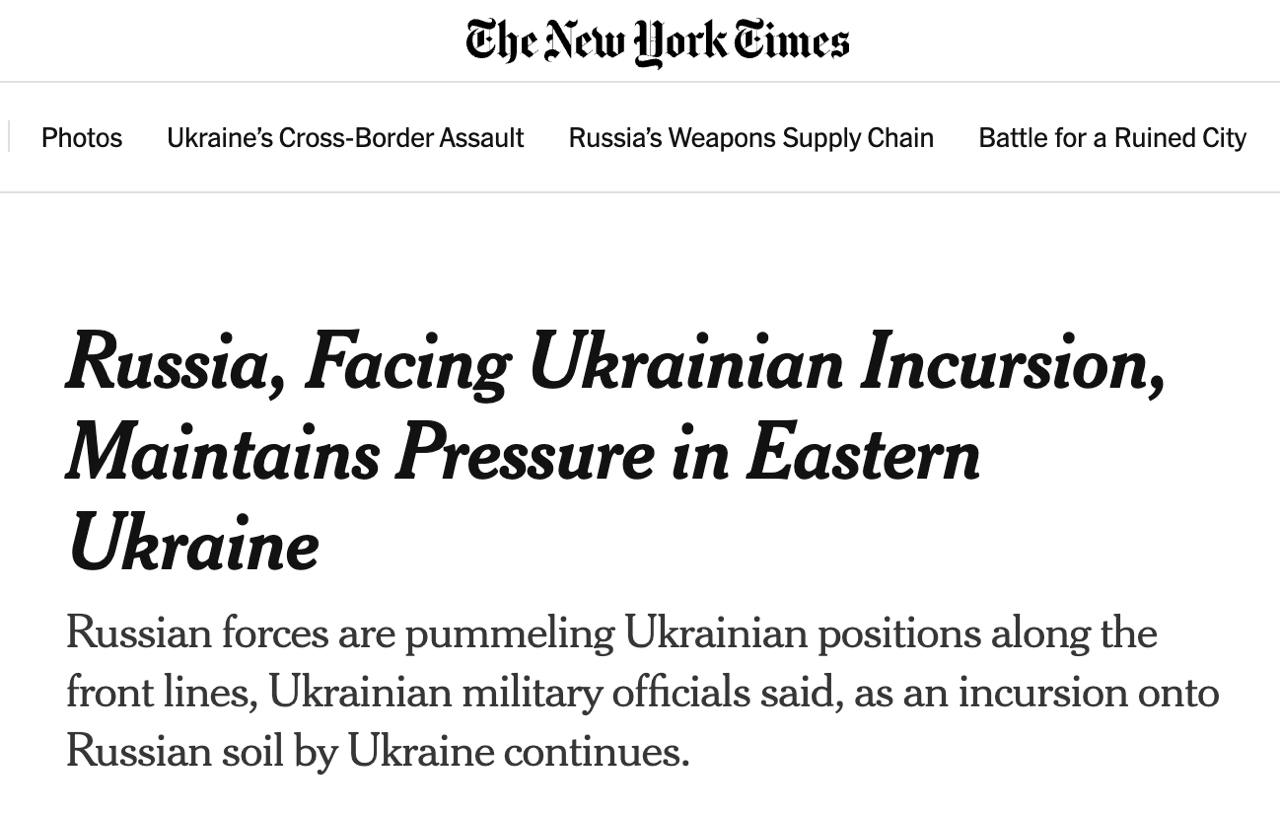 Россия не снижает давления на восточном фронте, несмотря на наступление ВСУ под Курском - NYT
