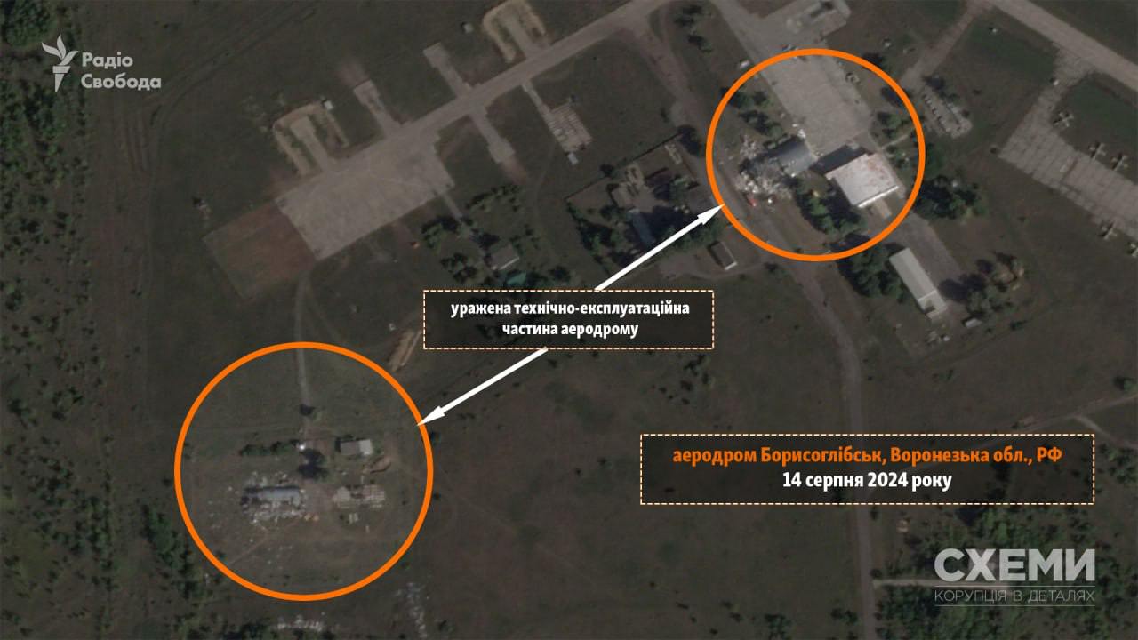 Опубликованы спутниковые снимки с последствиями атаки. На них видны разрушения нескольких ангаров.