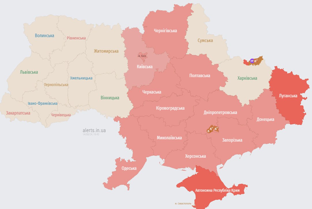 21.08 Отбой тревоги в Киеве и большинстве областей.