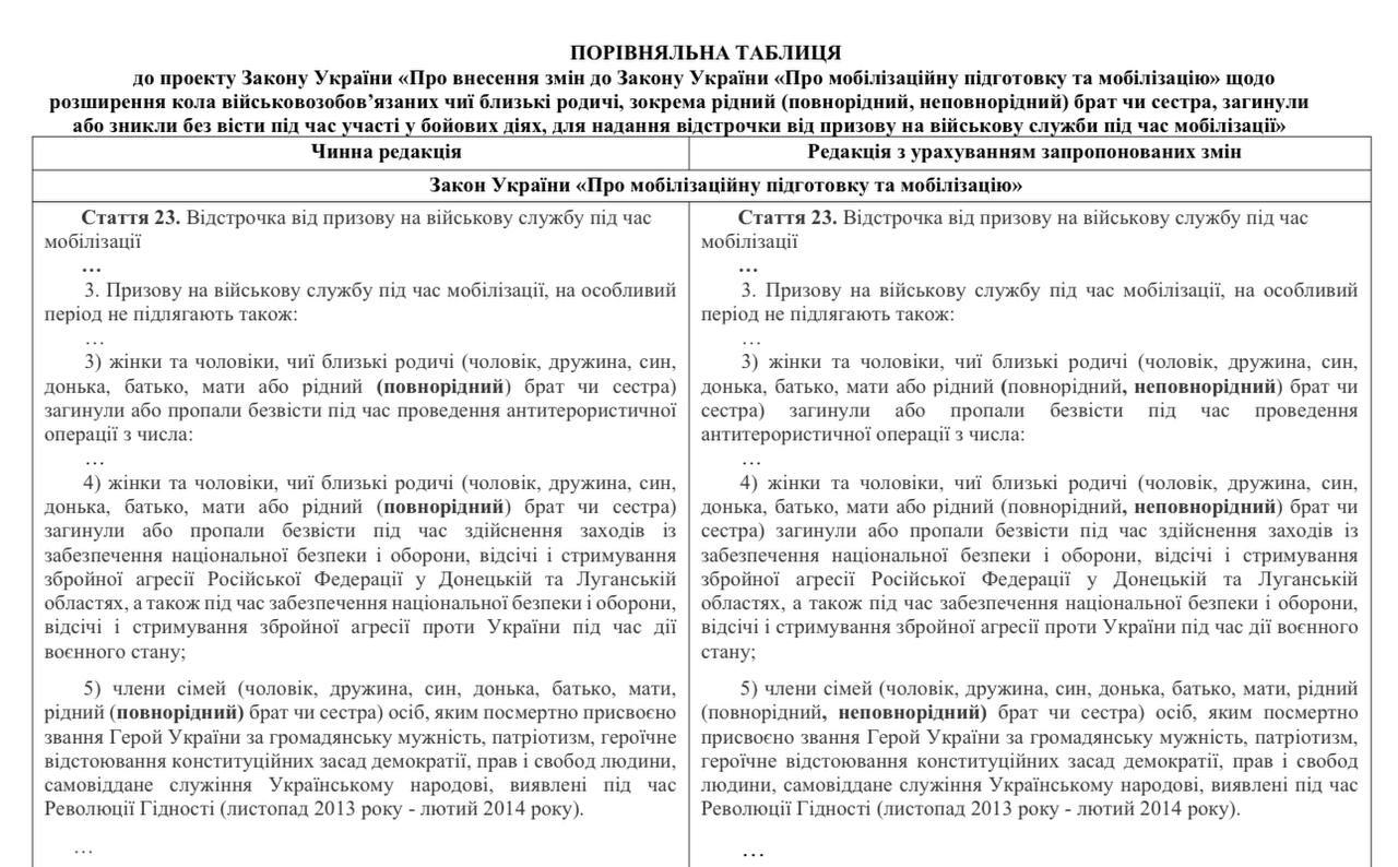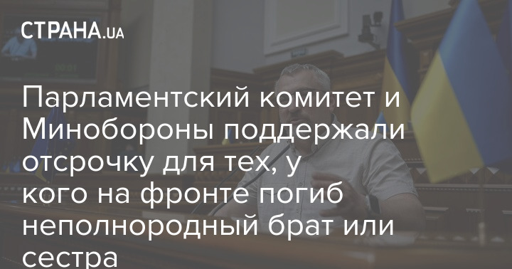 Парламентский комитет и Министерство обороны поддержали законопроект №11391 об отсрочке для украинцев, у которых на фронте погиб неполнородный брат или сестра.
