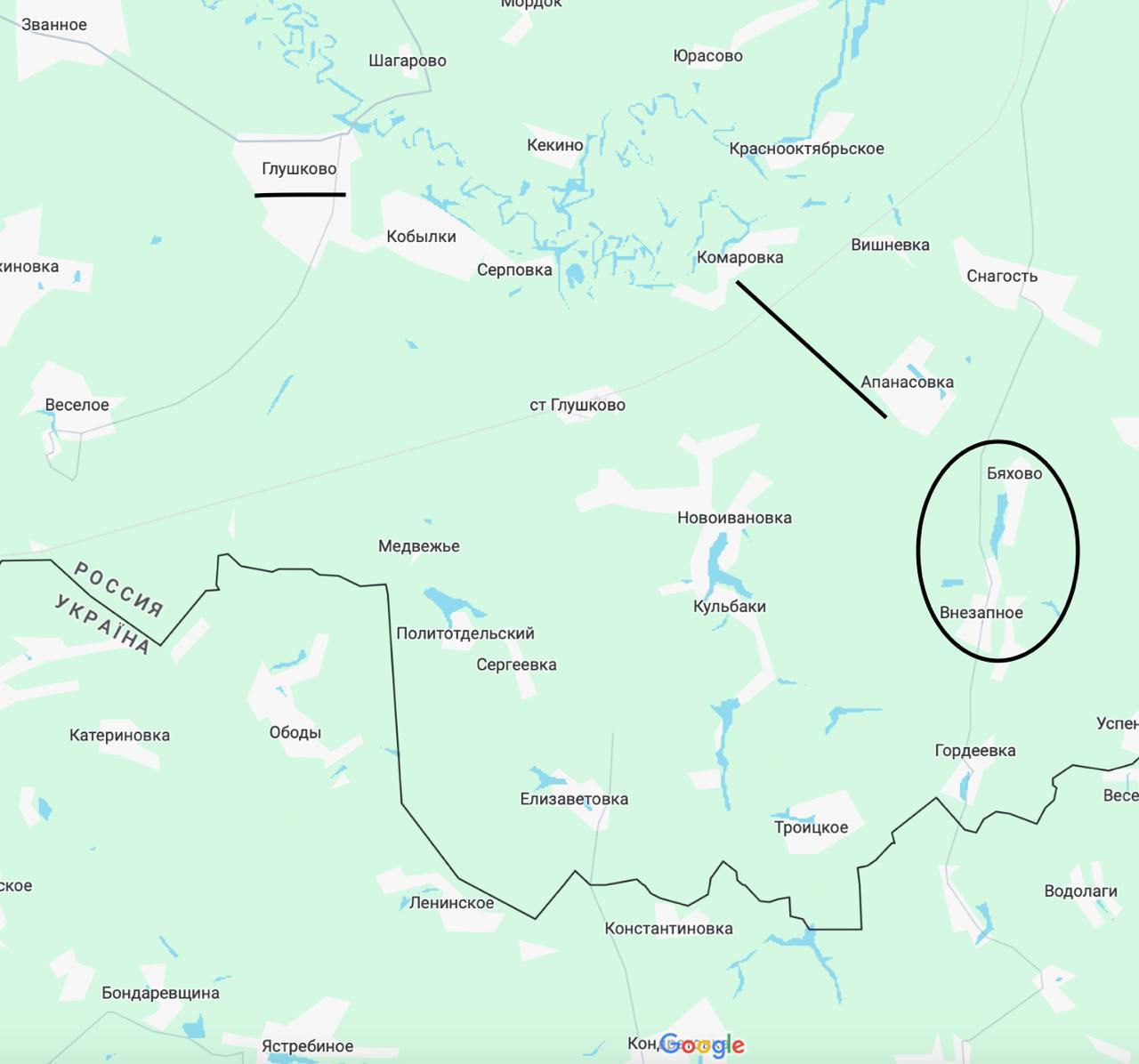 Также вчера российские паблики массово писали об атаках ВСУ в Глушковском районе, который расположен еще западнее - к югу от Рыльска.