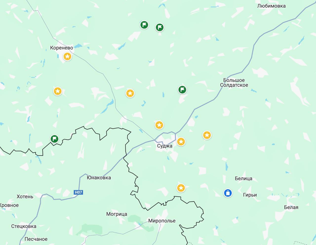 Таким образом, по версии Москвы, ее Вооруженные силы что существенно оттеснили ВСУ с участка юго-восточнее Суджи. Вчера Минобороны РФ утверждало, что там ВСУ вытеснили из села Крупец (отмечено на карте синим).