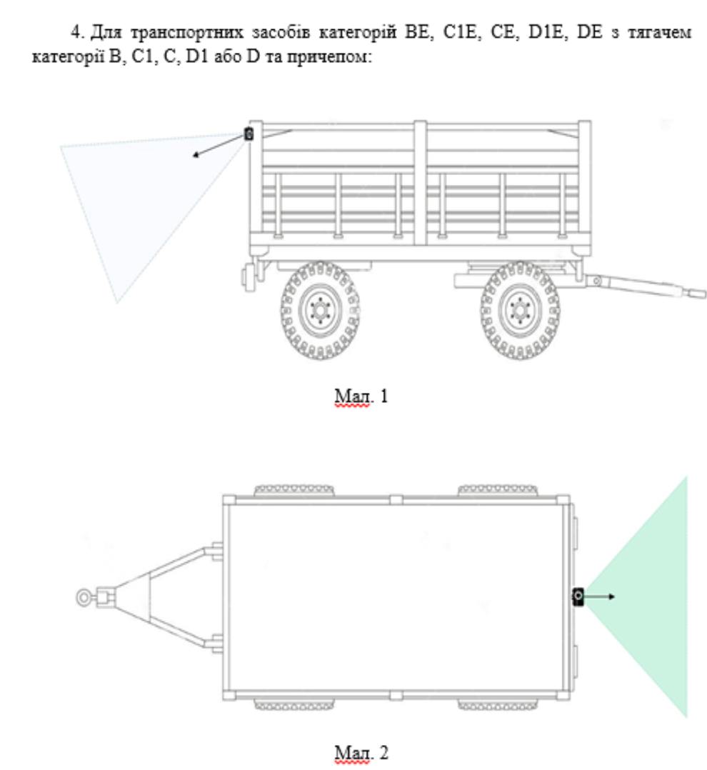В грузовых авто камеры размещаются в кабине и сзади машины по габаритам прицепа.