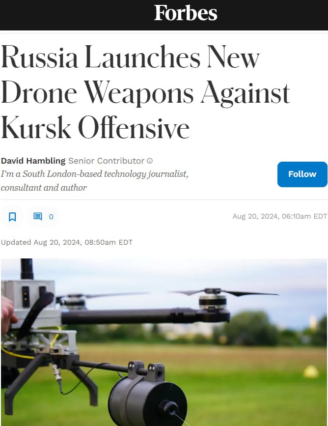 19.34 Россия запустила новое беспилотное оружие против украинского Курского наступления, сообщает Forbes.