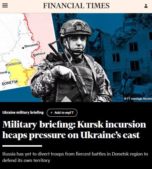 20.04 Оборона ВСУ в Донецкой области осталась без снарядов и солдат после наступления на Курскую область, сообщает The Financial Times.
