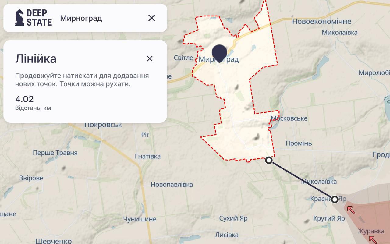 Мирноград на Покровском направлении находится в 4-5 километрах от линии фронта.