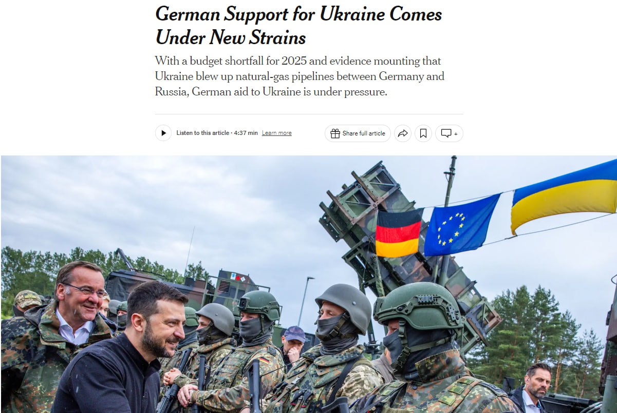 По данным издания, вопросы по поддержке Украины возникают в связи с острыми разногласиями в Германии по поводу бюджета и растущим количеством доказательств того, что Киев стоит за подрывом "Северных потоков".