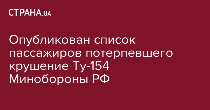 Опубликован список пассажиров потерпевшего крушение Ту-154 Минобороны РФ