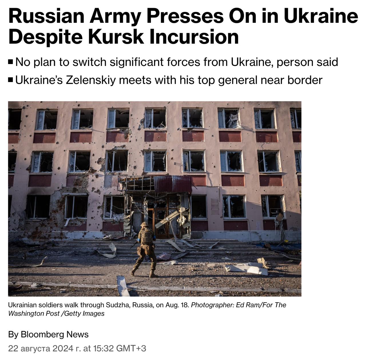10:58 РФ решила не перебрасывать значительные силы с Донбасса в Курскую область, сообщает Bloomberg со ссылкой на источник, близкий к Кремлю.