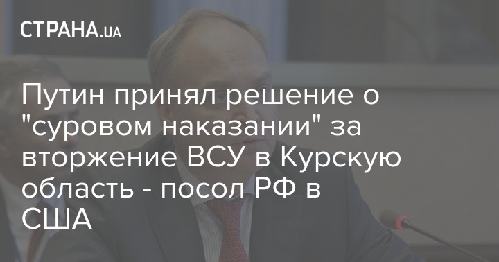 Путин принял решение о "суровом наказании" за вторжение ВСУ в Курскую область - посол РФ в США