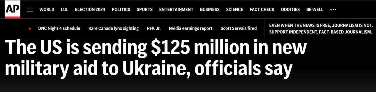 США передадут Украине пакет военной помощи на 125 миллионов долларов ко Дню независимости. Об этом сообщает Associated Press со ссылкой на американских чиновников.