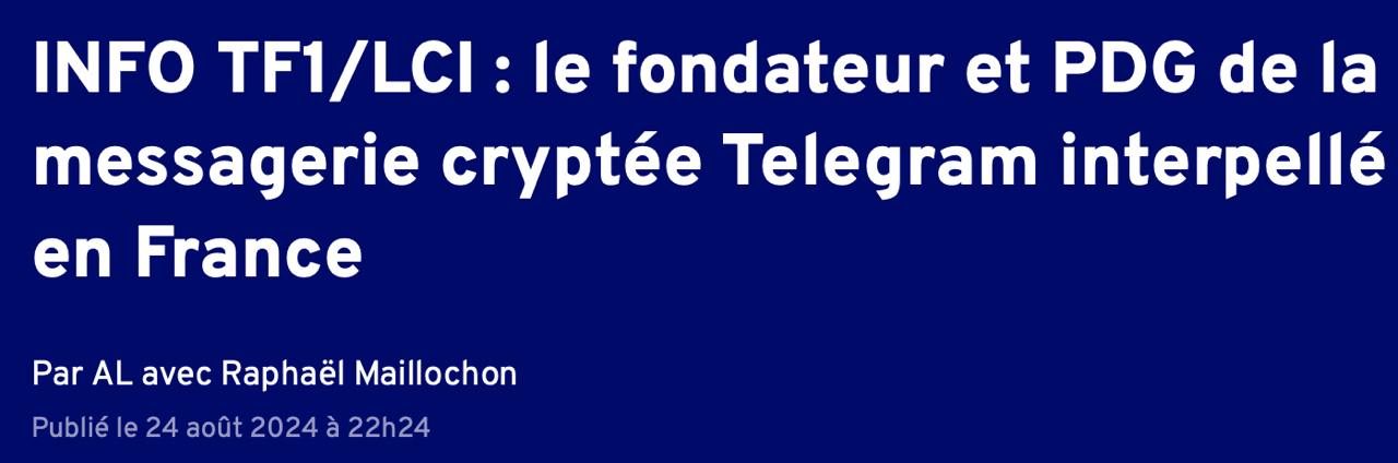 По данным французского телеканала TF1, причина задержания основателя Telegram в Париже - обвинения мессенджера в содействии торговле наркотиками и преступлениям, связанным с детьми.