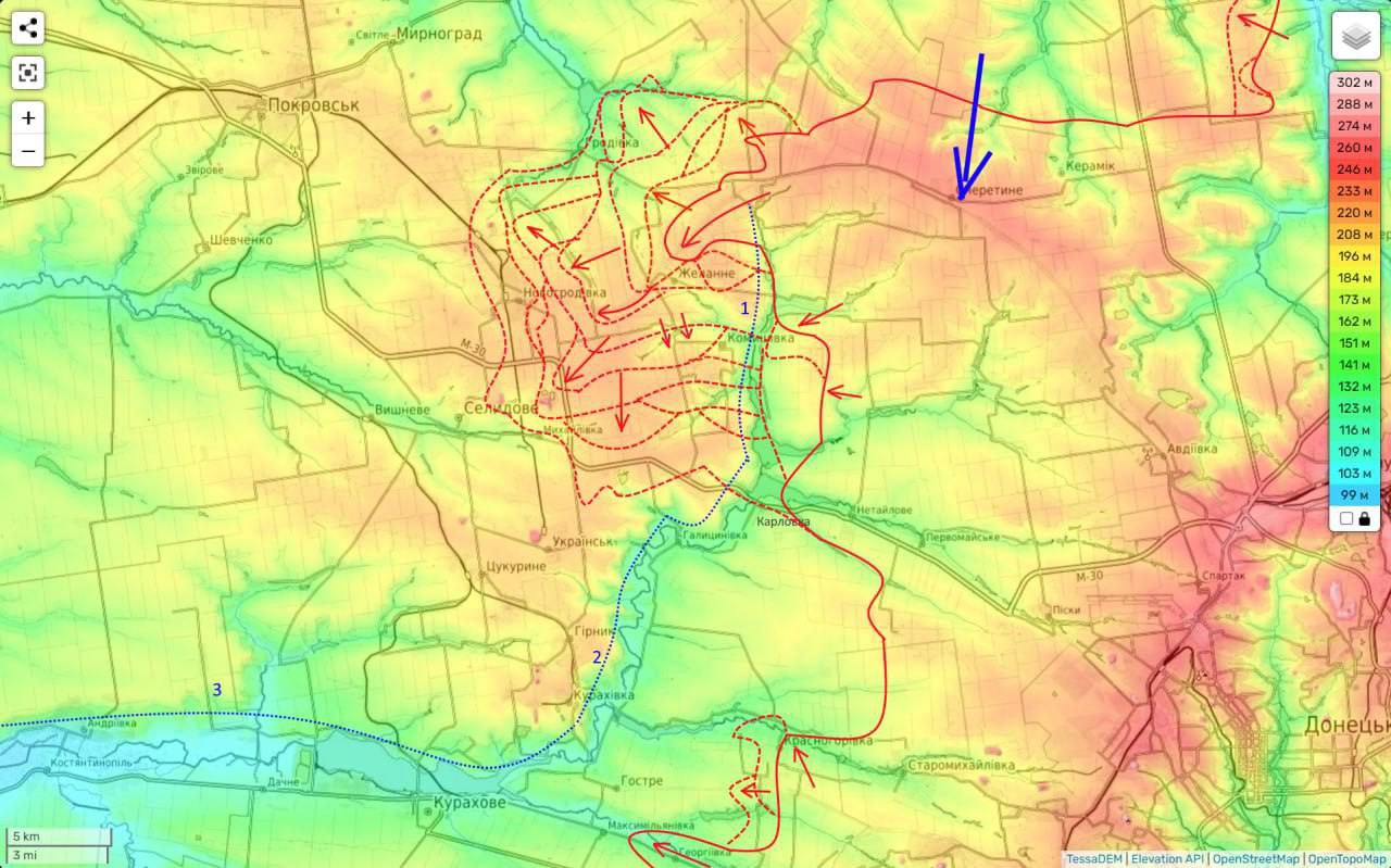 А сегодня известный российский военный блогер Юрий Подоляка высказал предположение, что Украина, "подпуская" российские войска к Покровску и Селидово, готовит удар по флангам наступающей здесь группировки армии РФ - основной удар с севера на Очеретино и вспомогательный с юга.