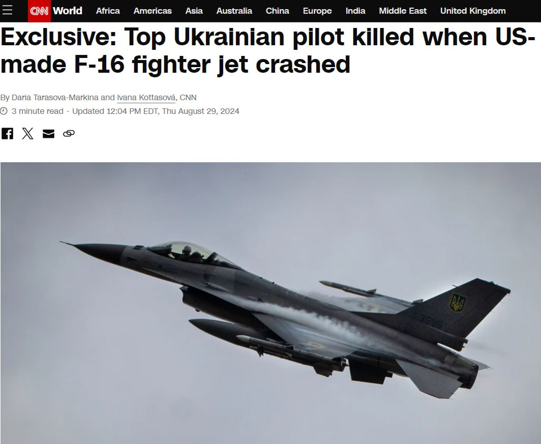 А сегодня западные СМИ сообщили, что 26 августа Украина потеряла первый F-16 из-за ошибки пилота. Но CNN со ссылкой на источник в Воздушных силах ВСУ пишет, что там считают эту версию неверной.