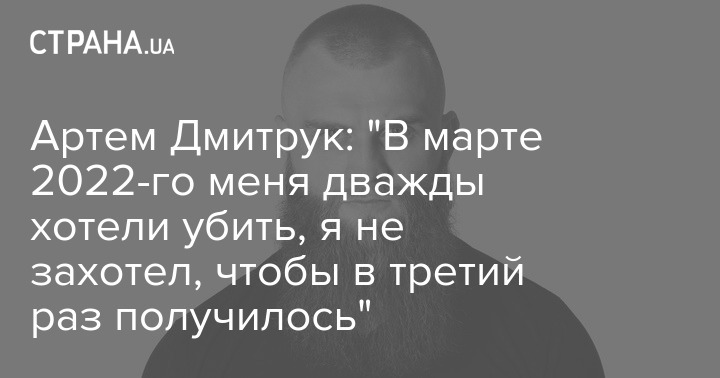 Артем Дмитрук: "В марте 2022-го меня дважды хотели убить, я не захотел, чтобы в третий раз получилось"