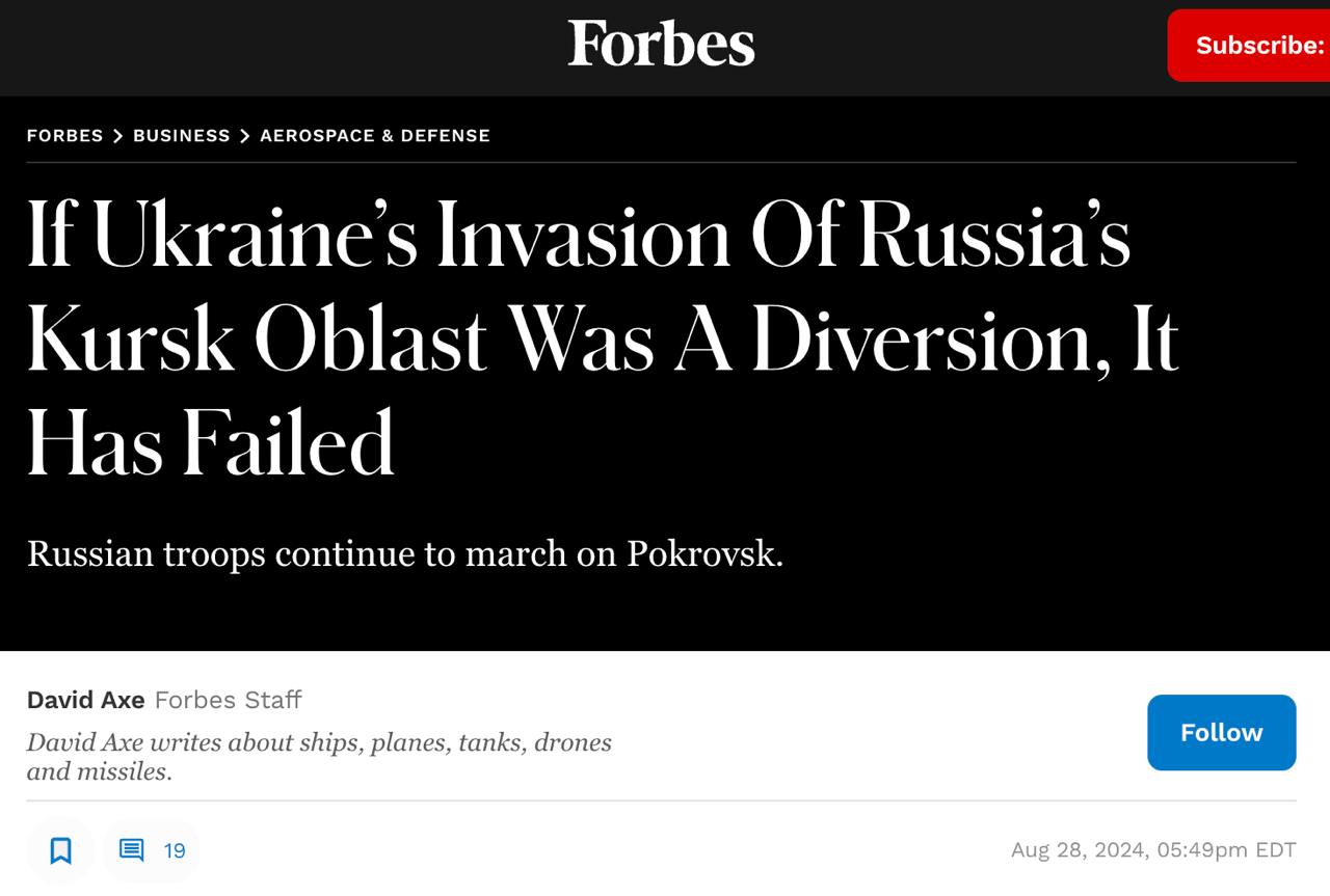 Киев провалил задачу отвлечь РФ от Донбасса Курским наступлением - Forbes