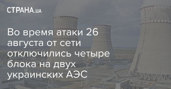 Во время атаки 26 августа от сети отключились четыре блока на двух украинских АЭС