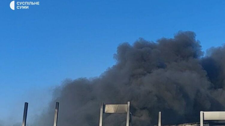 Между тем появились и фото дыма после обстрела предприятия в Сумах.