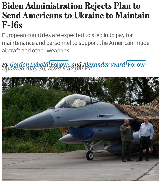 "Без гражданских подрядчиков, обслуживающих самолеты, таких как ремонт и замена деталей, Украина будет бороться за то, чтобы самолеты, предоставляемые Западом, были в рабочем состоянии. Но США неохотно отправляют персонал в Украину из-за проблем безопасности. Небольшой контингент дипломатов, военнослужащих и других государственных подрядчиков привязан к посольству США в Киеве", - говорится в статье.