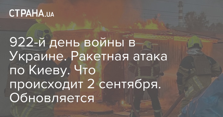 В понедельник, 2 сентября, в Украине идет 922-й день войны с Россией.
