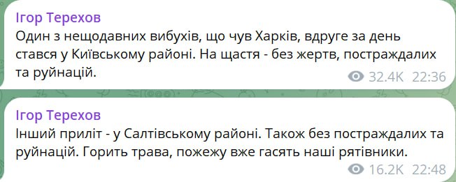 15.28 О взрывах в Харькове сообщают местные паблики.