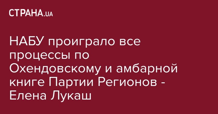 Национальное антикоррупционное бюро Украины проиграло судебные процессы по "амбарной книге" Партии регионов (ПР) и причастного к ней председателя ЦИК Михаила Охендовского. Такое мнение выразила экс-министр юстиции Елена Лукаш на своей странице в социальной сети Facebook.