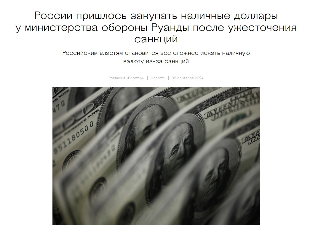 Из-за санкций США Россия закупает наличные доллары обходными путями, в том числе в Руанде - СМИ