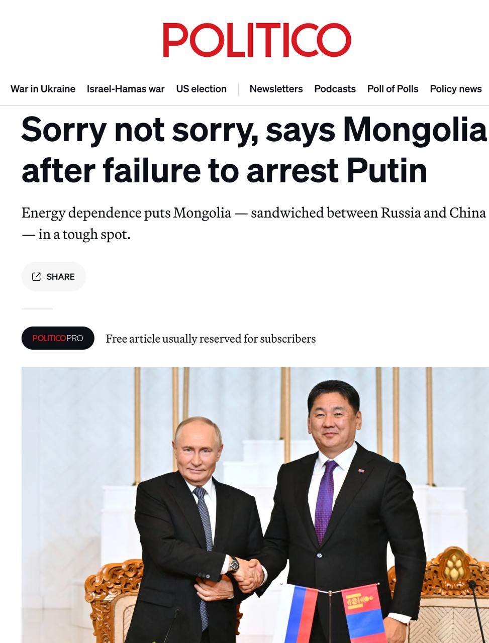 Анонимные представители власти Монголии объяснили западным журналистам, почему не арестовали прибывшего в страну Владимира Путина по ордеру Международного уголовного суда, хотя монголы ратифицировали Римский статут.
