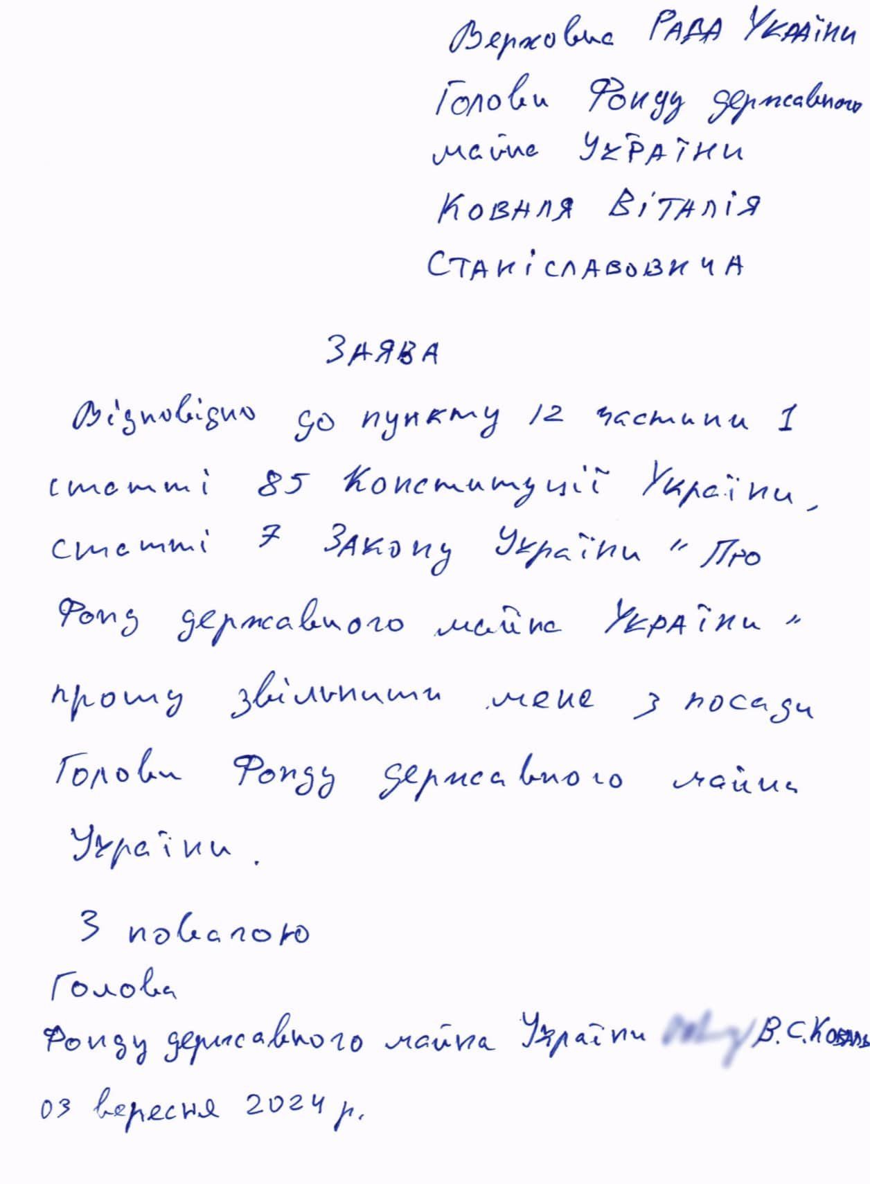 Также заявление об увольнении поступило от председателя Фонда государственного имущества Виталия Коваля.