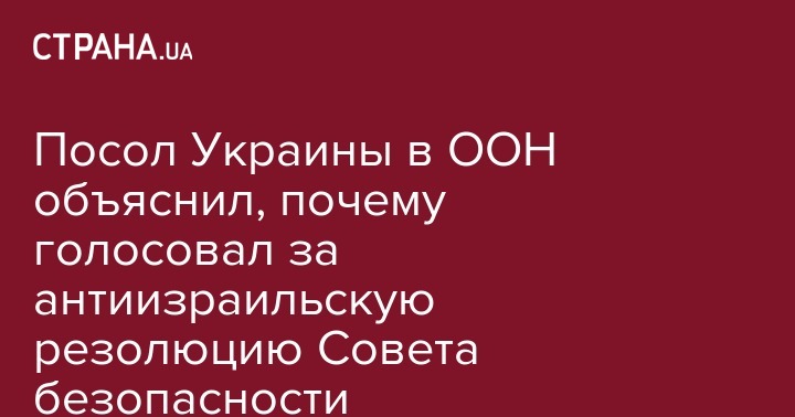 Посол Украины при ООН Владимир Ельченко объяснил, почему Украина поддержала "антиизраильскую" резолюцию в ООН. Об этом он сообщил на своей странице в Twitter.