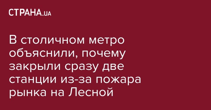 Как сообщала "Страна", пресс-секретарь киевского Метрополитена Наталья Макогон пояснила, что от огня пострадала только станция "Лесная", а "Черниговскую" закрыли, поскольку там нет возможности вернуть поезда в обратном направлении. Поэтому поезда шли только до "Дарницы".
