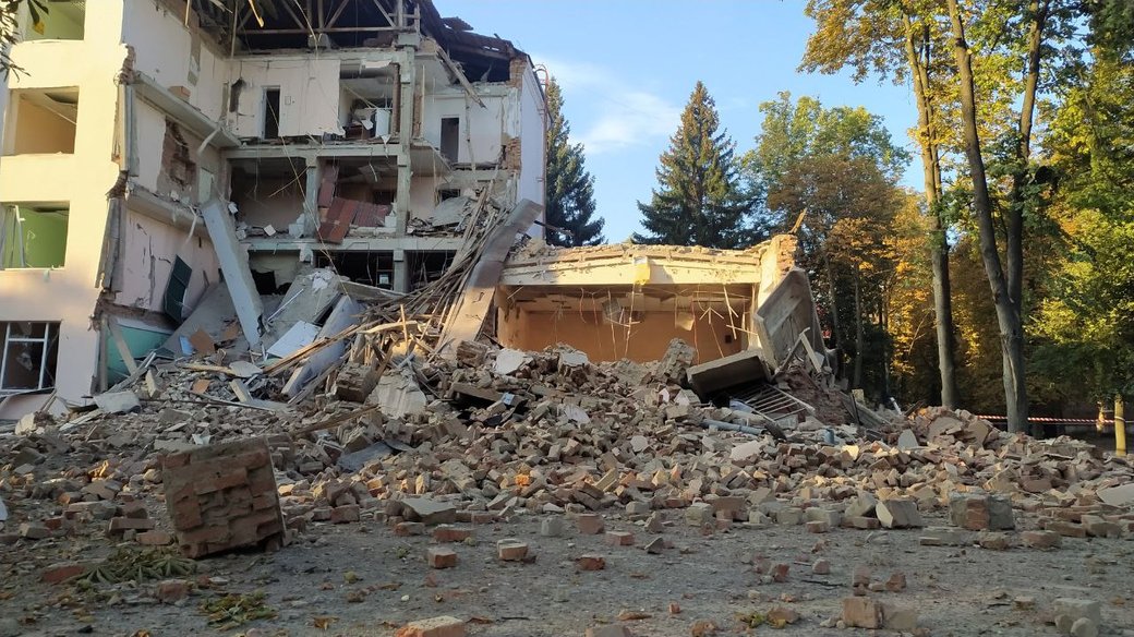 Вчера вечером россияне сбросили авиабомбу на здание Сумского госуниверситета. Один из корпусов вуза частично уничтожен.