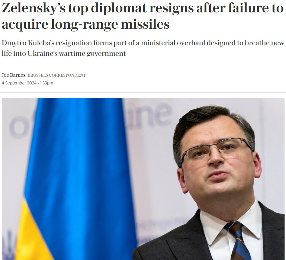 Причиной отставки главы МИД Дмитрия Кулебы могло стать то, что ему не удалось убедить союзников дать разрешение на удары дальнобойными ракетами вглубь территории России.