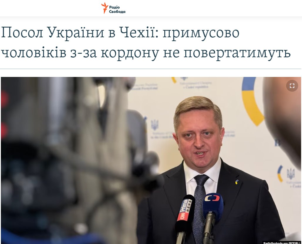 Ранее глава МИД Чехии Липавский заявил, что его страна не поддерживает украинских мужчин, пытающихся скрыться от мобилизации, сидя за границей. Также он подчеркнул, что возможности его страны ограничены, когда речь идет о принудительном возвращении украинцев на Родину.