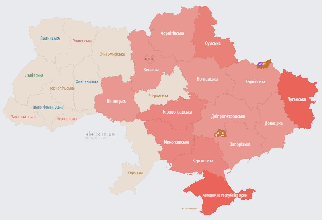 23:14 В Киеве и ряде северных и центральных областей тревога.