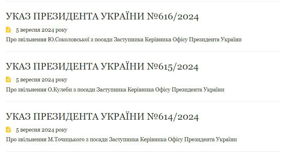 Уволены Николай Точицкий, Алексей Кулеба и Юлия Соколовская.