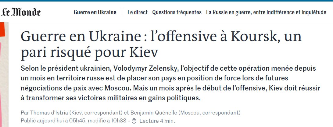 Наступлением в Курской области Украина не добилась желаемого результата - Le Monde