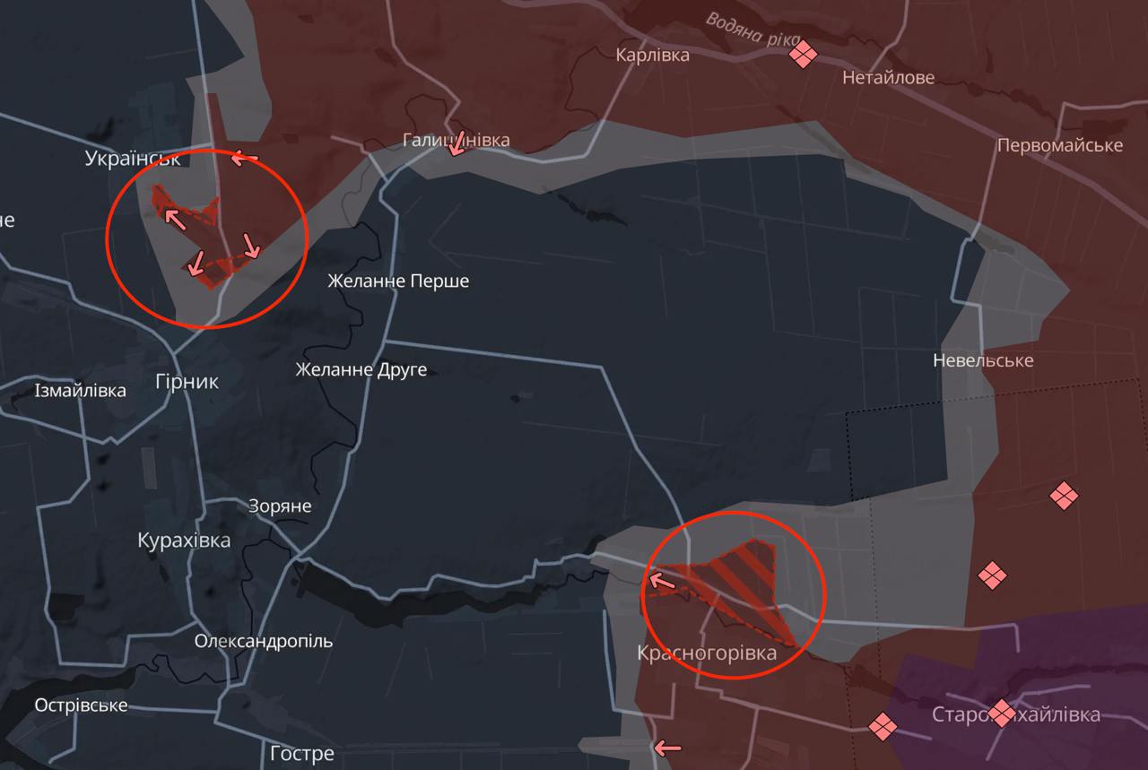 А также с юга украинским силам в Желанном Первом и Втором, которые сейчас отбиваются от россиян с севера.
