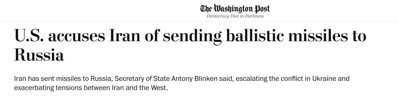 18:10 Судя по всему, в качестве официальной причины выдачи Украине разрешения на удары западным дальнобойным оружием по РФ, если оно будет дано, в США назовут поставки иранских ракет России.