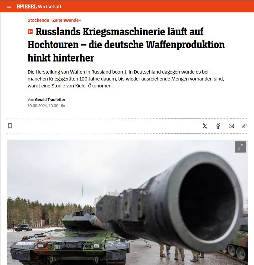 Военная машина России работает на полную мощность, а немецкое производство оружия отстает.