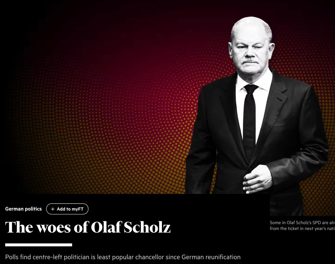 По опросам у Шольца самый низкий рейтинг среди канцлеров с момента объединения Германии в 1990 году. 77% недавно опрошенных назвали Шольца "слабым лидером", который не может добиться своего.