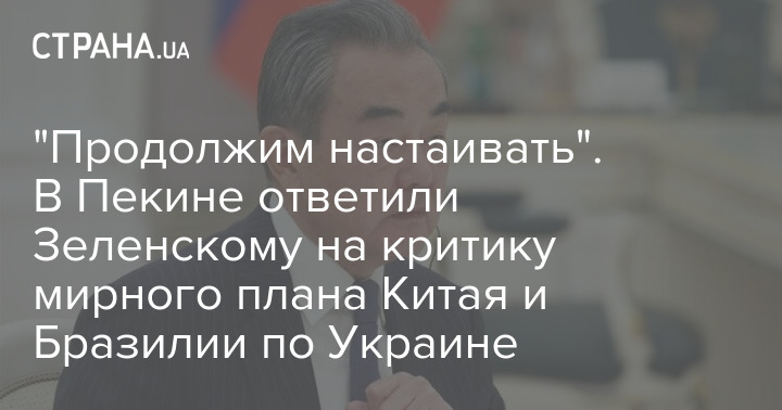 "Продолжим настаивать". В Пекине ответили Зеленскому на критику мирного плана Китая и Бразилии по Украине