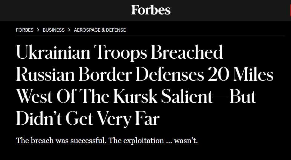 Издание сообщает, что прорыв границы, который произошел буквально день назад, "перестал работать". Украинцы прорвались, но далеко не ушли, говорится в статье.