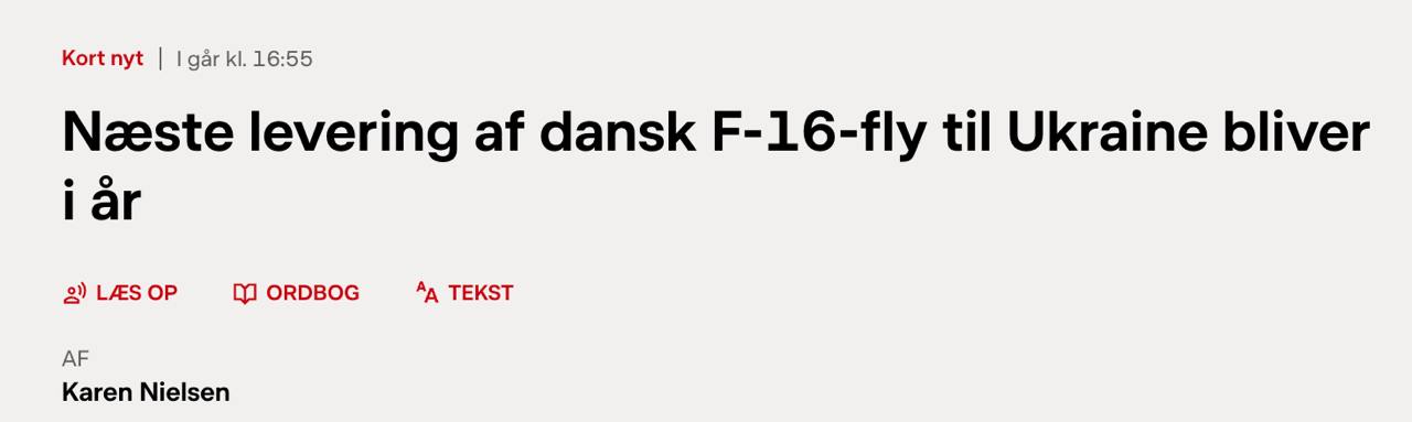 Сколько именно самолетов будет передано, не уточнил. Всего Дания обещала 19 истребителей.
