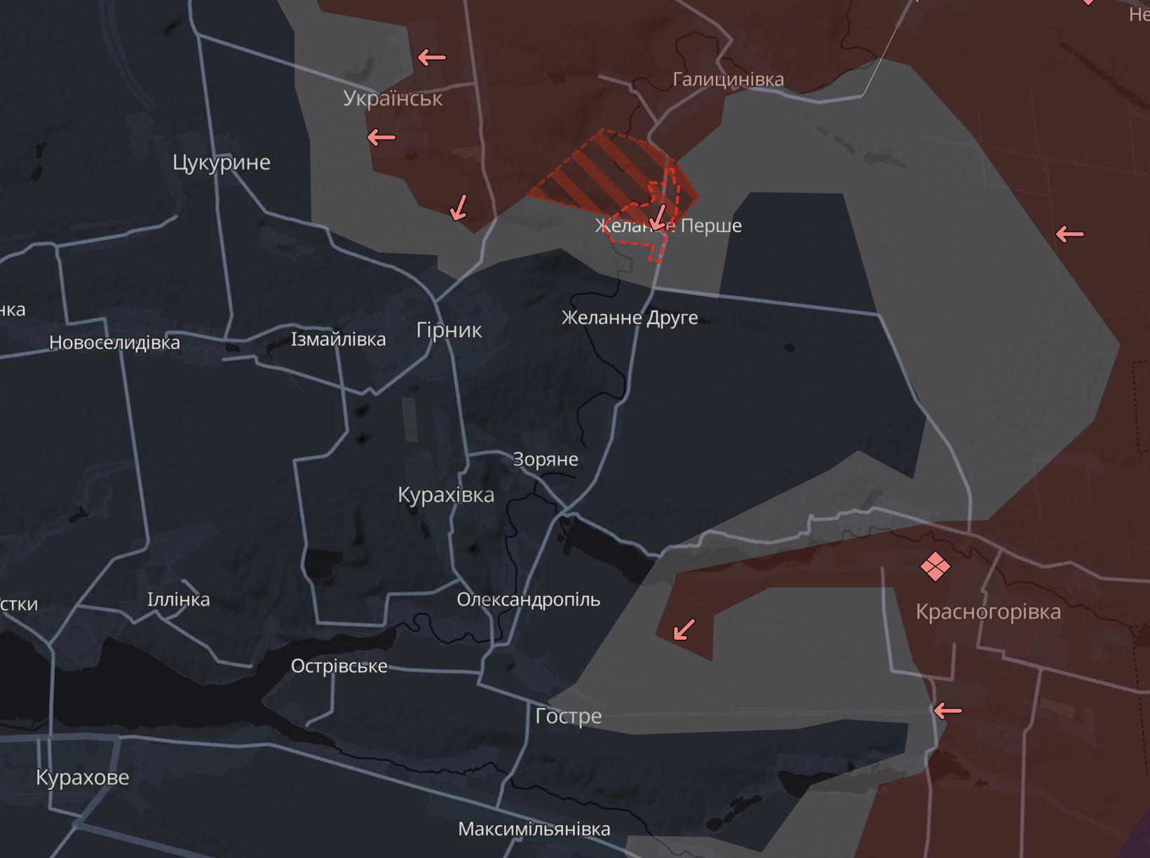 На Покровском направлении российские войска продвинулись в районе Желанного Первого. Село, судя по карте DeepState, по большей части захвачено, а южная часть в "серой зоне". Российские паблики утверждают, что село уже полностью под контролем РФ.