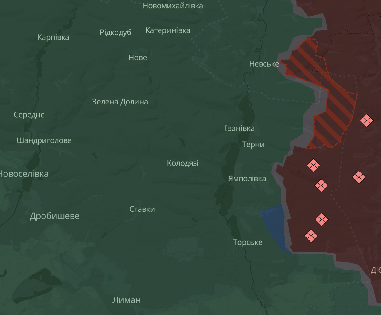 Крупное продвижение у РФ на Лиманском участке, в направлении Невского и Тернов - более восьми километров по фронту и свыше трех километров на запад.