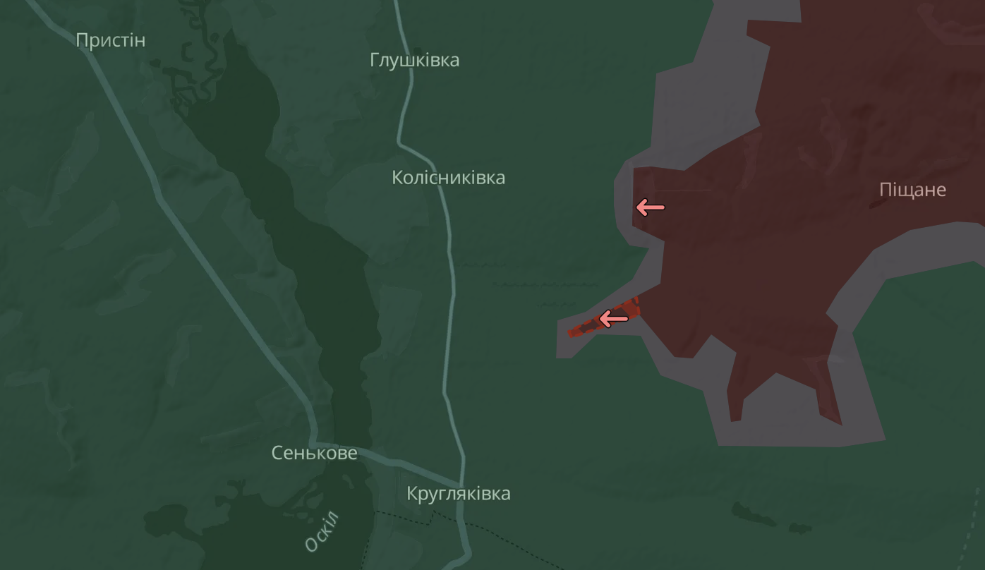 Также российские войска снова продвинулись севернее - в районе Песчаного, где они стремятся выйти к реке Оскол. Их цель, судя по всему, - выйти на Кругляковку, через которую идут две дороги из Боровой на Купянск, по левому и правому берегам Оскола. До Кругляковки осталось менее трех километров.